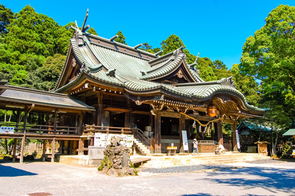 縁結び、福徳開運、病気平癒、商売繁盛など広範な御利益があります。島根の出雲大社と同様に縁結びのご利益を求め、多くの参拝者が訪れます。特徴的な大しめ縄も見どころです。